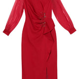 Drapée dans cette robe satinée, chaque hiver se transforme en saison de l'élégance. Une couleur rouge passionnée et une texture luxueusement lisse promettent de capturer les regards.